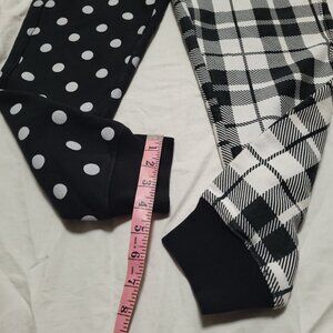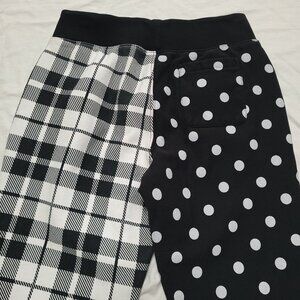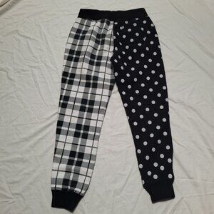 Stylish joggers featuring a unique polka dot and plaid design. Comfortable and trendy.