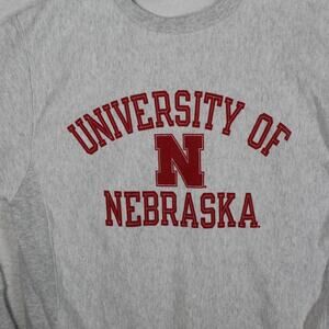 Champion Reverse Weave Sweatshirt Medium Gray University Nebraska Huskers Campus