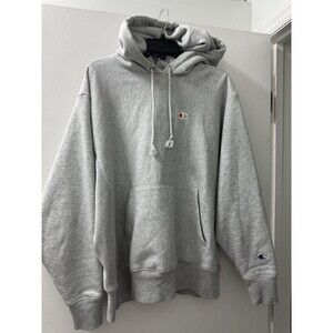 The Champion Reverse Weave Sz L Hoodie in Gray is a unisex pullover made from a heavyweight fleece fabric blend, featuring embroidered logo accents. With a drawstring closure and long sleeves, this hoodie is perfect for a casual yet stylish look. The Champion brand adds a touch of American classic sports style, making it a versatile and comfortable addition to any wardrobe.