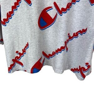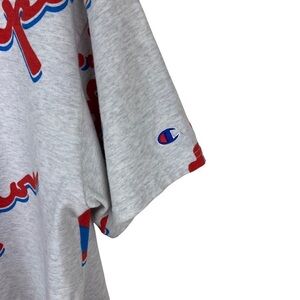 Champion Reverse Weave Tee T Shirt Gray w Red Spellout Logo Size XL Cropped