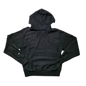 Heavyweight Champion Reverse Weave hoodie in solid black. Durable thick fleece with classic logo and sturdy construction—perfect for staying warm, streetwear looks, or layering in colder months.