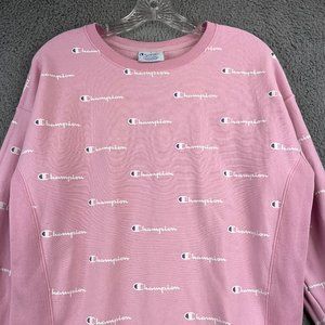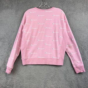 Champion Reverse Weave Women Crewneck Sweatshirt Logo All Over Script Print L