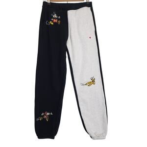 Champion Reverse Weave x Disney Joggers Womens XS Embroidered Black and White Colorblock Mickey & Friends - Mickey Mouse, Minnie Mouse and Pluto
