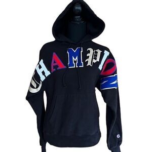 Champion Reverse Weave Old English Spellout Pullover Hoodie , black, size XS. STAY WARM AND COZY WITH THE REVERSE WEAVE PULLOVER HOODIE!