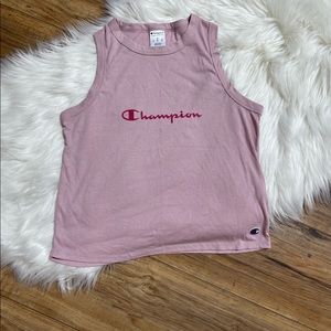 Very cute slightly cropped high neck tank top. Stretchy material. Light pink color with dark pink logo.