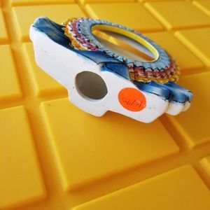 #989 Winner circle Ribbon Ceramic picture frame. hand painted 2.5" opening!