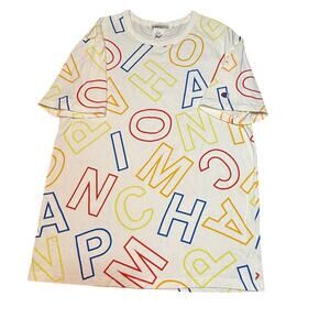 Champion Scrambled Letters Tee Men’s M White Primary Colors Crew Neck.