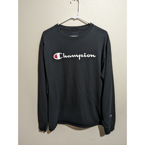 Champion Shirt Adult Large Black Spell Out Logo Long Sleeve Mens. No damage in excellent condition. I have another one in white please message me if you'd like to bundle up for both.
