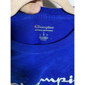 Champion Shirt Adult Large Blue Spell Out Logo Pullover Tee Mens