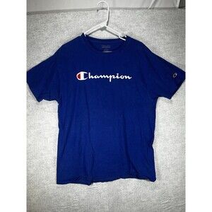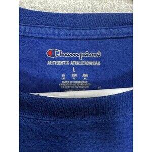 Champion Shirt L Blue Mens Authentic Athleticwear Spellout Logo Tee Short Sleeve