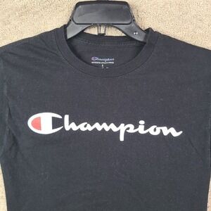 Champion Shirt Mens Small Black Crew Neck Short Sleeve Graphic Tee Cotton