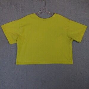 Champion Shirt Womens Large L Yellow Reverse Weave Crop Top Colorful Cotton