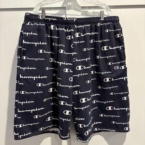 Champion Shorts Mens 2XLT Navy Blue All Over Print Logo Athletic Big Tall