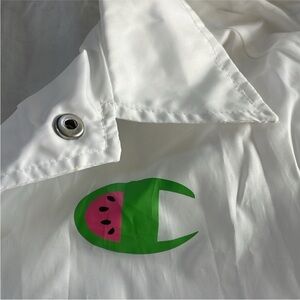 Champion Size Large White Fruit Printed Windbreaker Lightweight Jacket.