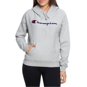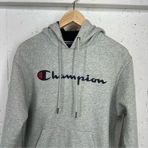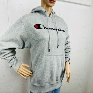 Champion Unisex Size Small Gray Chenille Hoodie Sweatshirt in good preowned condition light normal wear.