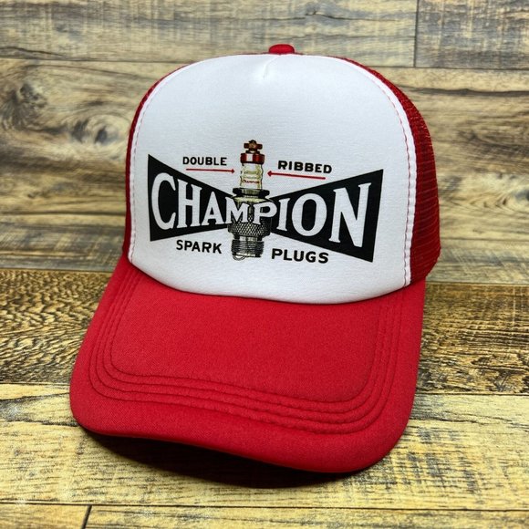 Champion Spark Plugs Mens Trucker Hat Red Snapback Racecar Motorsport NASCAR Cap
