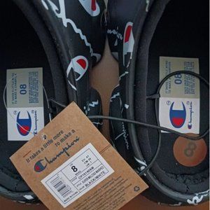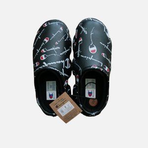 Champion Super Meloso Warped Slip on Logo Clogs Shoes Black White Mens Size 8