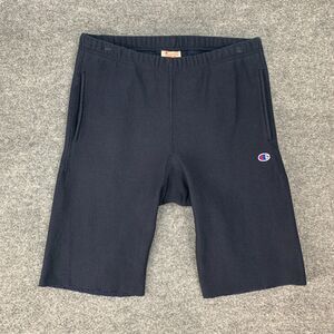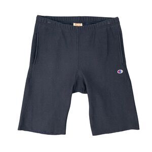 Champion Sweat Short Mens M Navy Reverse Weave Elastic Drawstring Waist Raw Edge