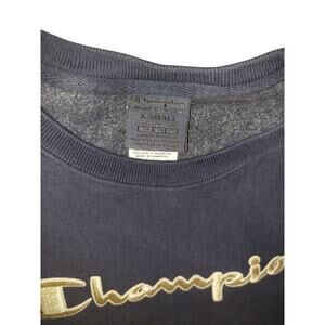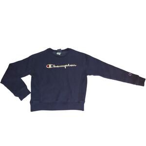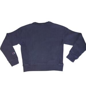 Step back in time with this Vintage Champion Pullover Sweater! Styled in a classic retro design, this women's sweater is presented in a deep navy blue color. Crafted for comfort and everyday wear, the pullover features the iconic Champion logo emblazoned across the chest in a bold, contrasting white and red.