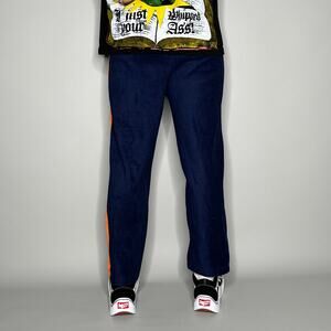 Champion Sweatpants Navy Blue Fleece Baggy Wide Leg Fit Orange Youth L