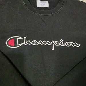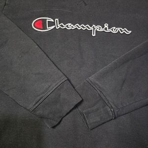 Champion Sweatshirt Adult XLarge Pullover Black Long Sleeve Crew Neck Athletic shows signs if wear such as fading see pictures for reference and measurements