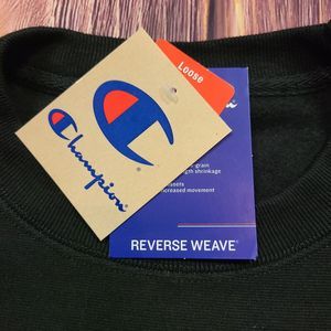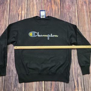 Champion Sweatshirt Mens Large Reverse Weave Black Multicolor Pullover Loose Fit