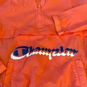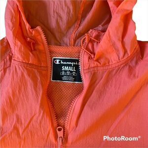 Champion Sz Small Papaya Anorak Nylon 1/2 Zip Adjustable Hood Packable Jacket