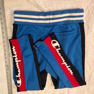 Stylish and comfortable, these Champion track pants feature a vibrant blue and red design. Perfect for active days.