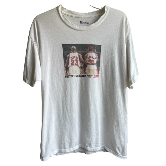 Champion T shirt 90s inspired Chicago Bulls Michael Jordan Dennis Rodman. Smoke free home. Please note measurements in photos for proper fit.