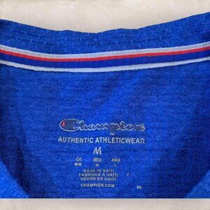 Champion T-Shirt Men’s Size Medium Blue Colorblock Spellout Fitness Sports