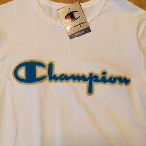 Champion T-Shirt Mens Small Heritage Embroidered Logo White Crewneck