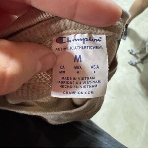 Gently worn men's size medium champion tan brown thermal waffle knit long sleeve athletic t-shirt. Crew neckline, stretchy material, Please review all photos for any signs of wear-pictured as is. Disclaimer: Any items with any wear/staining has not been treated, and unsure of ability to remove/treat condition. Comes from a smoke free home, bundle with other items to save & minimize shipping cost.