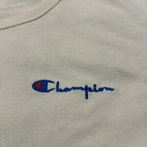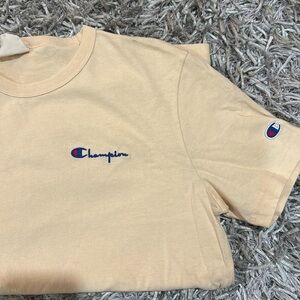 Tan Champion Unisex tee. Size adult small. Both logos are stitching not vinyl. Never worn. Great condition no staining or damage.