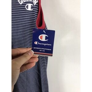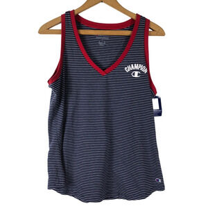 Champion Tank Top Womens Large V Neck Knit Navy Blue Stripe Red Piping NEW