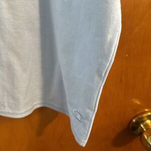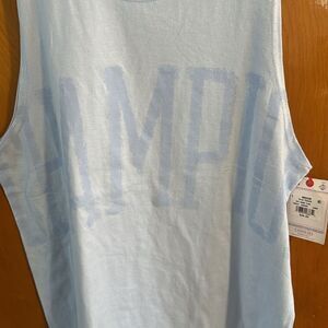 This is new with tags. The fabric is 90 % cotton, 10 % polyester. The chest is 44 inches, 22 flat. The length is 26 inches. The color is light blue.