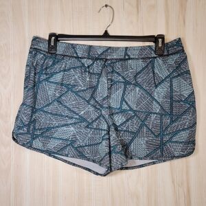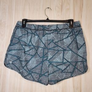 Teal & black lined running shorts.