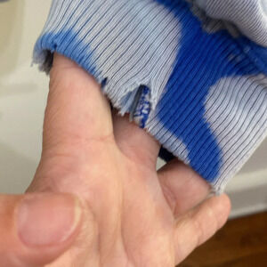 Worn but still has TONS of life left. My daughter loved this sweatshirt but has grown out of it. This sweatshirt has holes and is beat up. A unique tie dye look. Champion logo on the cuff. There are holes on the cuffs under the armpit and tiny holes in different locations of the sweatshirt. Please look at photos for measurements.