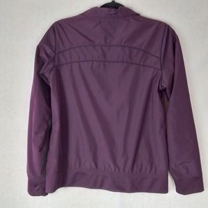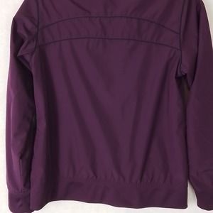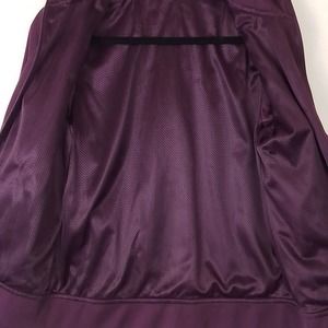 This track jacket is great for any time of year. It is a classic fabric and cut with breathable mesh lining, collar, and ribbed wrists/hems. The purple is an eggplant color. There is a tiny dark spot on the collar (pic 8) that is not very noticeable and will likely come out with cleaning. Aside from the spot, this preloved jacket is in excellent condition with no major flaws and little to no signs of wear.