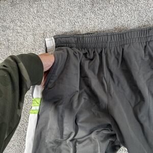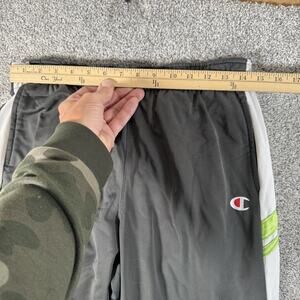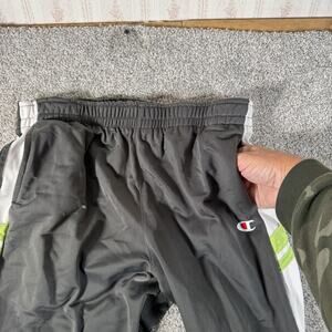 Champion Track Pants Mens Medium Gray White Green Athletic Side Stripe Logo