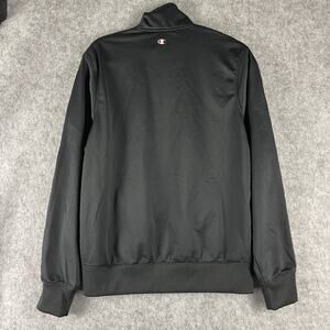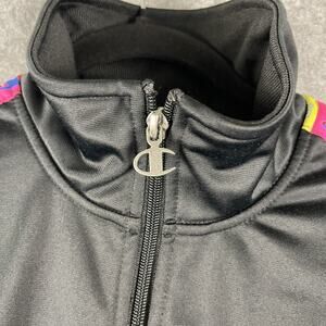 Champion Tricot Track Jacket Mens Medium Black Full Zip Colorful Logo Sporty