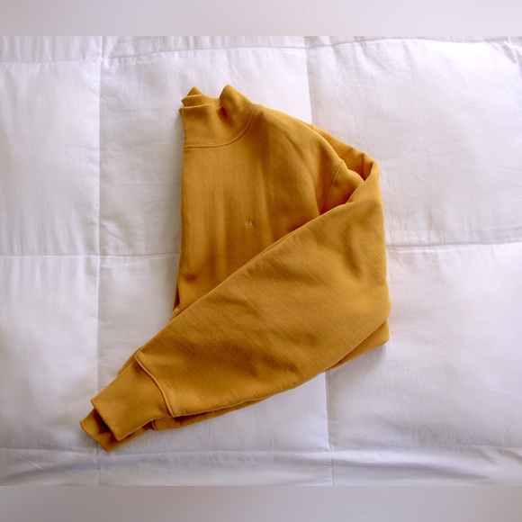Marigold-colored turtleneck sweatshirt by Champion (S). Fits slightly oversized if you’re a size XS.