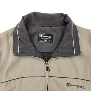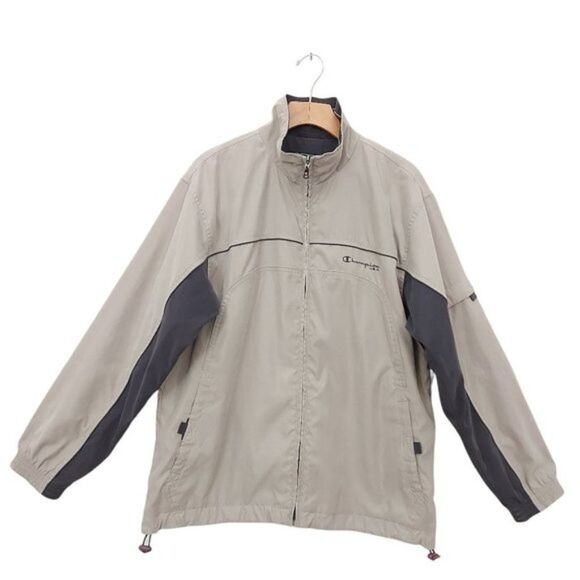 Champion USA Mens Active Jacket Size Medium Full Zip Mock Neck Long Sleeve Beige