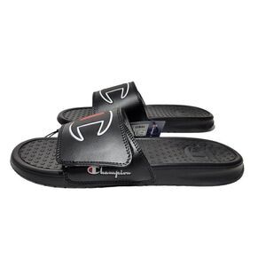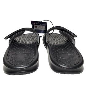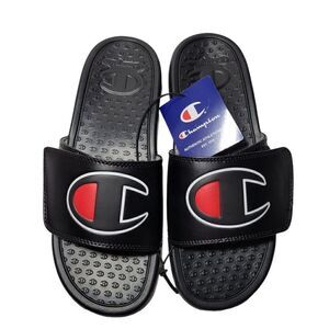 Champion Unisex Slide Sandals Men Size 7 Women Size 9 Black Hook & Loop Closure