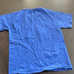 Champion short sleeve tee. Bold blue color. Orange and white graphic print on front.