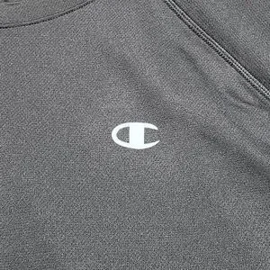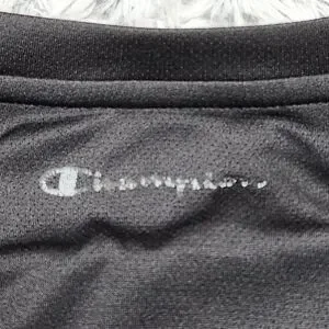Material: Tag details are faded, but this shirt is a standard Champion Vapor poly performance blend