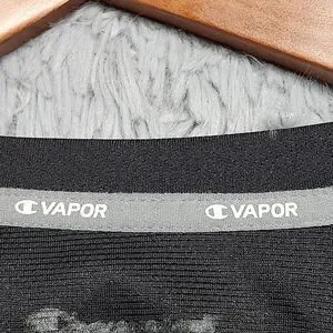 Features Champion 'C' logo on left chest and 'Vapor' branding on left hem and inner neck.