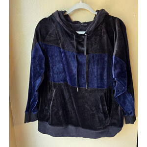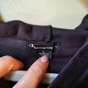 Champion Velour Hoodie Size Large Soft Pullover Navy Black