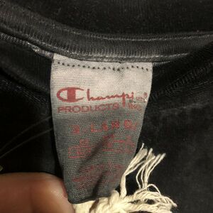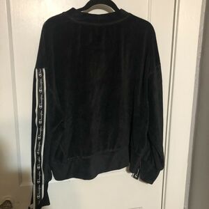 Champion Velour Logo Tape Cropped Sweatshirt Women's XL Black White Crewneck.