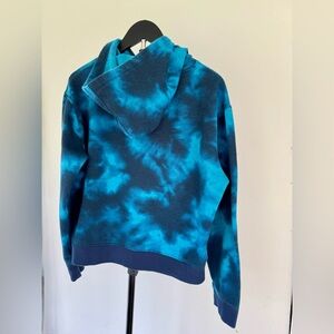 Women’s large - blue tie-dye sweatshirt by Champion. Includes a cozy hood and front pocket.