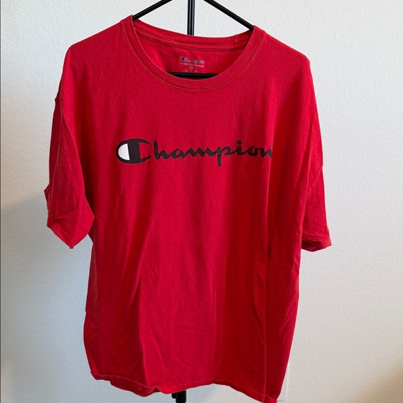 Vibrant red tee with signature Champion logo. Comfortable and stylish for any occasion.